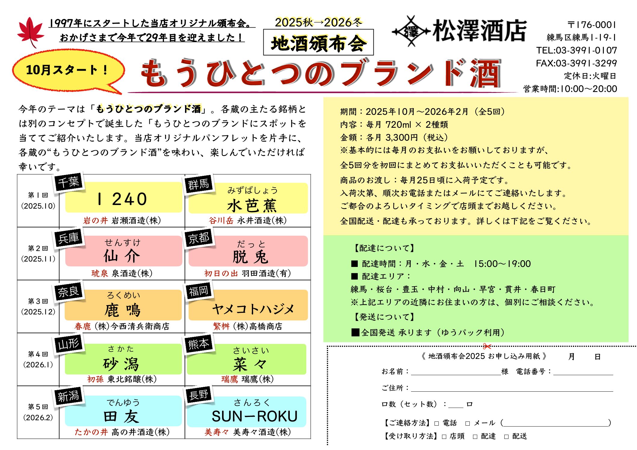 ご好評をいただいております「当店オリジナル地酒頒布会」が、今年もいよいよスタートいたしました。